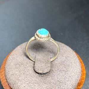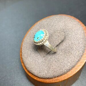 VTG Sterling Silver 925 Turquoise Bezel Set Rope Border Statement Ring Size 3.75