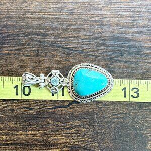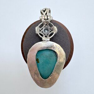 VTG Sterling Silver 925 Turquoise & Blue Topaz Pendant Size 2.5" Length