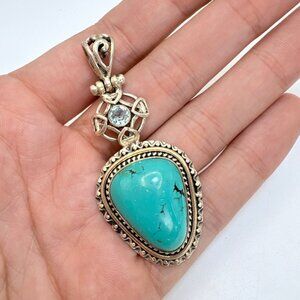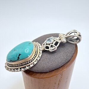 VTG Sterling Silver 925 Turquoise & Blue Topaz Pendant
