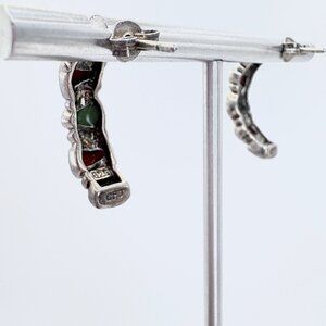 VTG Sterling Silver 925 Turquoise & Coral Half Hoop Earrings Size 0.75" Length