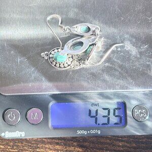 VTG Sterling Silver 925 Turquoise Spiral Design Dangle Earrings