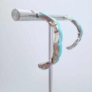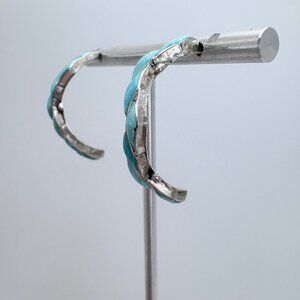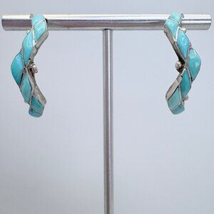 VTG Sterling Silver 925 Turquoise Wavy Half Hoop Earrings