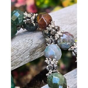 Amazing rich green aventurine stones and other semi precious stones adore this beautiful statement necklace.