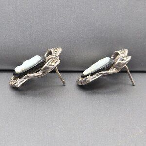 VTG Sterling Silver Black Onyx & MOP Shell Cameo Earrings Bow w/ Marcasite Signe
