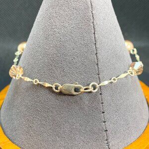 Sterling Silver Champagne Faux Pearl, Swarovski Crystal Station Bracelet 7.5"