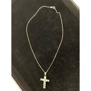 VTG Sterling Silver Cross Pendant Necklace Turquoise Onyx Inlays 7598 Mexico 18"