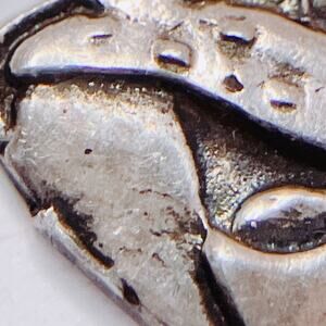 Features: Licensed character, collectible charm; stamped "TM STER" (i.e., trademarked; sterling); oxidized patina; small size suitable for bracelet or pendant use; resembles Dig’em Frog, the Honey Smacks (Kellogg’s) cereal mascot introduced in the 1970s and heavily used through the 1980s–1990s