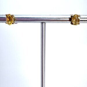 VTG Sterling Silver Gold Wash Oval Citrine Stud Earrings 1CTW Sterling Backs