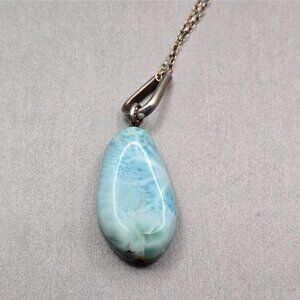 VTG Sterling Silver Larimar Pendant Necklace 18" Teardrop Signed F 6.79g