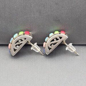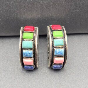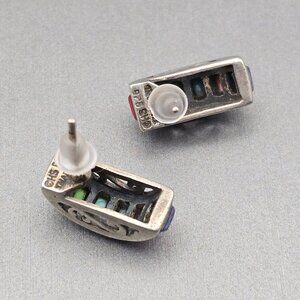 These vintage sterling silver earrings feature a sleek rectangular silhouette adorned with multi-colored bezel set gemstones —each measuring approximately 4.1mm x 2.6mm. The geometric layout, filigree side accents and vibrant hues evoke a Southwestern or artisan aesthetic, while the butterfly backs ensure a secure and comfortable fit. Stamped with the HS maker’s mark and “925,” these earrings weigh 3.55 grams and measure 5/8" x 1/4". Made in Thailand, they’re in good pre-owned condition with light surface wear. A perfect choice for lovers of minimalist design, colorful accents, or collectible silver pieces with subtle flair. They definitely have a Silpada like style. Features: • Sterling silver marked 925 • HS Makers Mark; made in Thailand • Thailand Hallmark • Rectangular Gemstones 4.1mm x 2.6mm • 3.55 grams • Southwestern Style, Half Moon Shape • Thailand • Butterfly backs for secure fit • Strongly resemble the Silpada style earrings Size: Womens 5/8" x 1/4" Condition: Pre-Owned Like New Good condition Gently used There may be some scratches due to normal use. Lightly tarnished. Please review all descriptions and photos closely before purchasing, thank you! Smoke Free Workspace Offers are always welcome and bundle to save on shipping. Happy Poshing!
