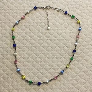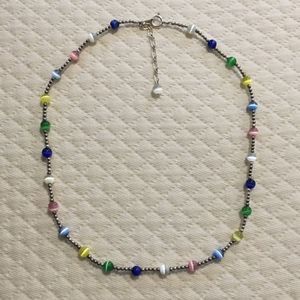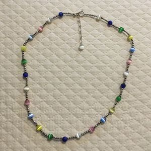 VTG Sterling Silver Multicolor Cats Eye Station Beaded Choker Necklace Extension