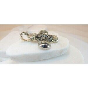VTG Sterling Silver Real Marcasite Cross Oxidized Pendant Lock Bail