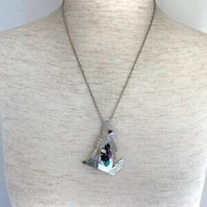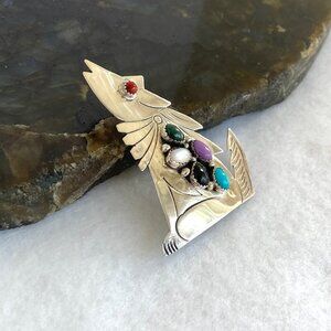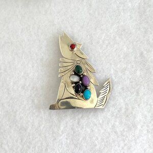 VTG Sterling Silver Signed Andrea Southwest Multi Gemstone Wolf Pendant Brooch