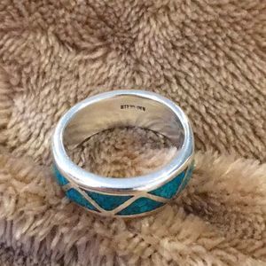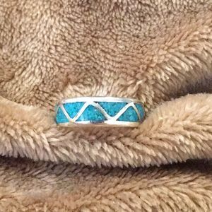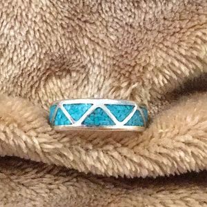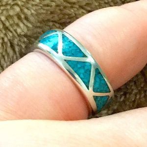 VINTAGE Sterling Silver Southwest Turquoise Inlay Ring