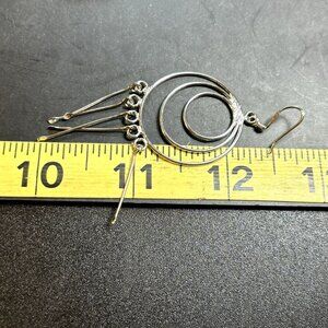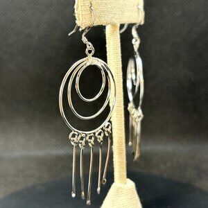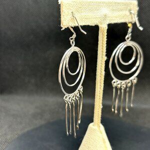 VTG Sterling Silver Triple Circle Dangle Earrings Tassels French Wire Hooks