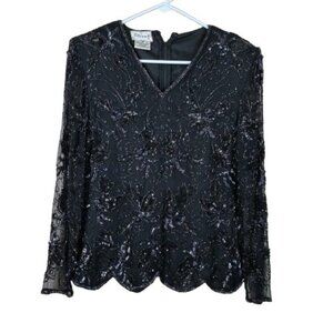 VTG Stènay 100% Silk Beaded Sequined Sheer Top Sz Medium Whimsigoth