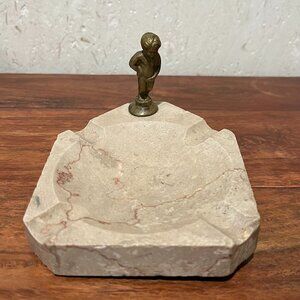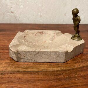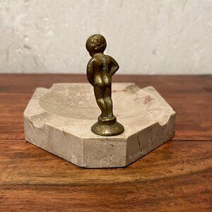 VTG Stone Marble Ashtray with Brass Bruxelles Brussels Cherub Boy Peeing Statue