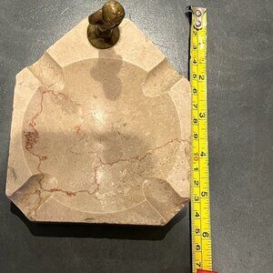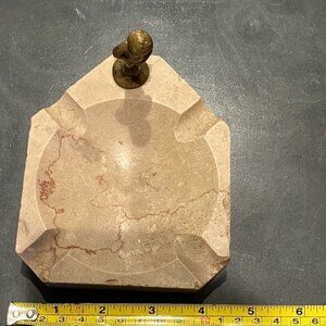 This vintage stone ashtray with brass Bruxelles cherub boy statue is so awesome. Great collectors' piece.