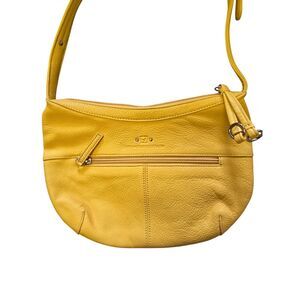 VTG Stone Mountain Mustard Yellow Leather Shoulder Hobo Bag Y2K Minimalist
