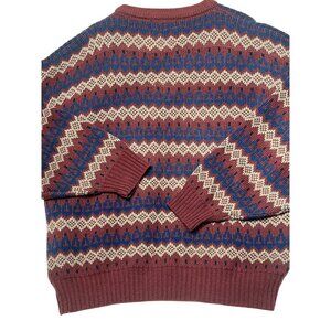 VTG Stoneriver Outfitters Men L Maroon Blue Patterned Crew Sweater Acrylic 80's