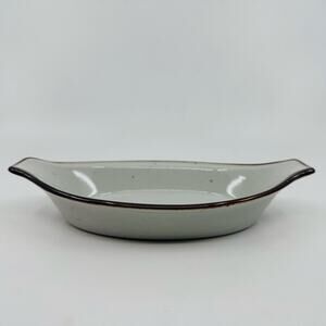 VTG Stoneware Set Cream Speckled 6 Bakers 5 Mugs Vintage Serveware Bakeware 11Pc