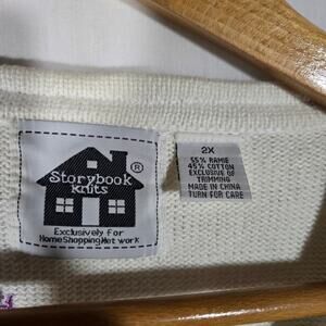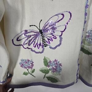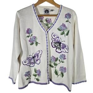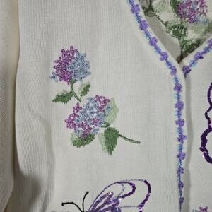 VTG Storybook Knits Novelty Butterfly Floral Beaded Embroidered Cardigan 2X Boho
