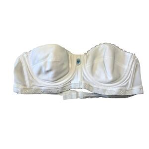 VTG Strapless Bra White 36A Blue Rosette Detail