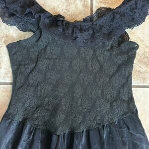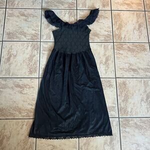 VTG Stroke Of Midnight Black Sheer Lace Ruffle Long Slip Dress Small Whimsygoth