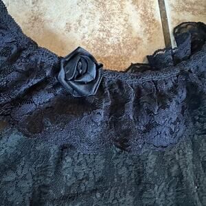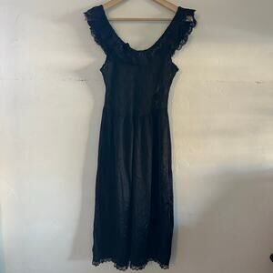 Stroke Of Midnight Black Sheer Lace Ruffle Long Slip Dress Small Whimsygoth