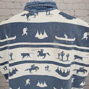 VTG Structure Activewear Blue White Western Cowboy Sleeveless Shirt USA Large
