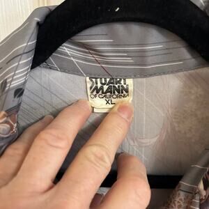 Vintage Stuart Mann Polo Disco Shirt Short Sleeves Collared Floral Gray Mens