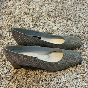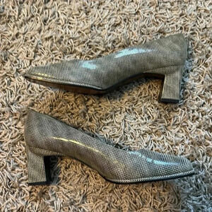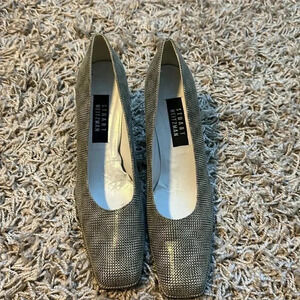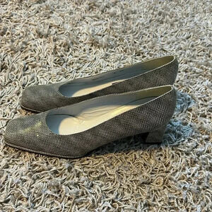 VTG Stuart Weitzman Cream Tan Woven Square Toe Heels Women’s 9 Mid Block Heel