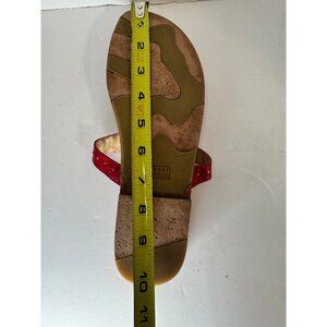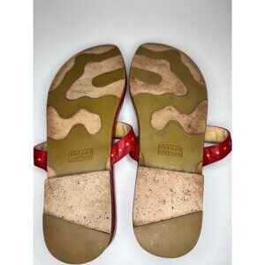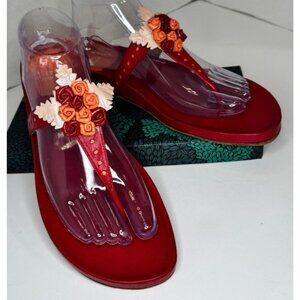 VTG Stuart Weitzman Red Leather Sandals Size 8.5 Floral Applique Thong Y2K Boho