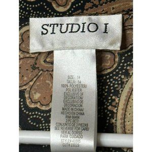 Chic vintage ladies blouse from Studio 1. Features a button-up front, flowy sleeves, and a comfortable size 14 fit. Ideal for adding a timeless touch to any wardrobe.