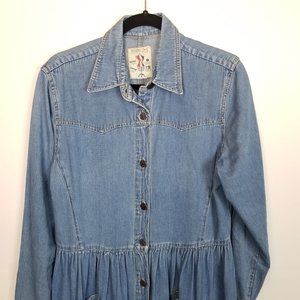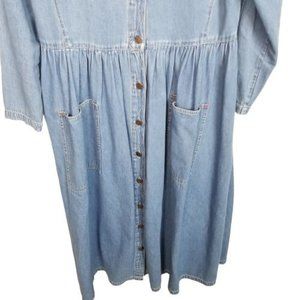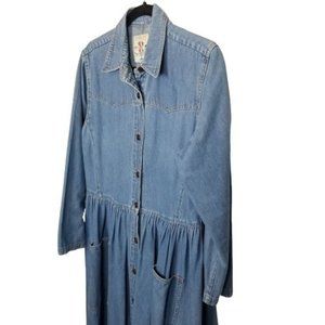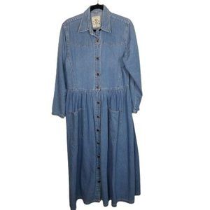VTG Studio 25 Women's Long Sleeve Denim Maxi Dress Button Front Western Pockets