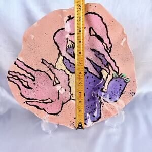 VTG Studio Art Pottery Abstract Pink MONSTERS Bowl 13” Modern 1980s Babat