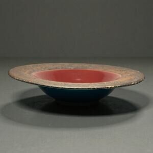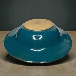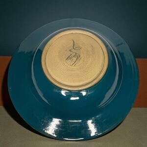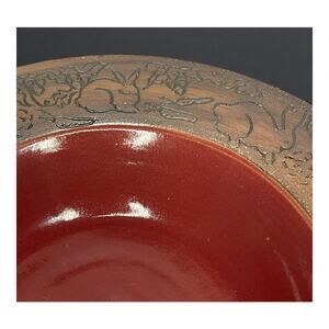 VTG Studio Art Pottery Rabbit Bowl 12” Oxblood Turquoise Hand Painted Signed CS