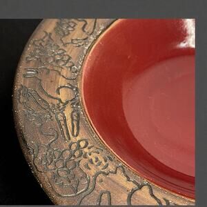 This stunning, one-of-a-kind art pottery bowl features a deep oxblood glazed interior paired with a textured rim decorated with whimsical rabbits, carrots, and floral accents. The exterior is finished in a rich turquoise glaze, and the underside carries the artist’s incised signature CS. A striking handmade studio pottery piece, perfect for collectors or as a statement décor bowl.