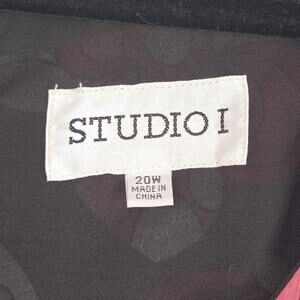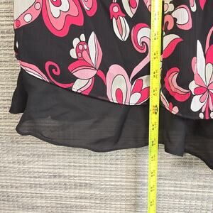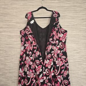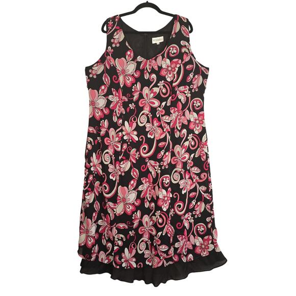 Studio I Dress Womens 20W Black Pink Floral Sleeveless Lined Ruffle Hem Plus Size