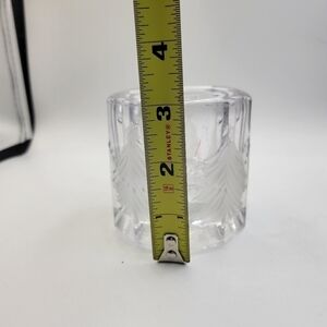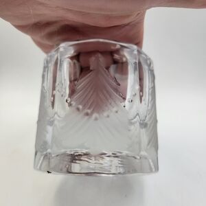 Festive Studio Nova Winter's Eve Votive Candle Holder featuring Christmas Pine Trees. Made of thick glass. Measures 3" high with an interior depth of 1-3/4", and 3" in diameter with interior width of 2-1/8" (all measurements are close approximates).