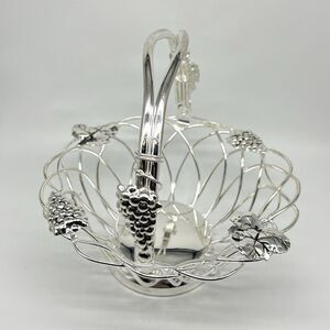 VTG Studio Silversmiths Silverplated Wire Round Basket Grape Clusters & Leaves