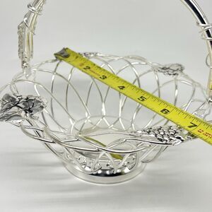 VTG Studio Silversmiths Wire Round Basket Silverplated Grape Clusters, Leaves & Vines.