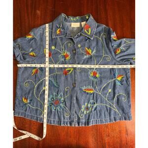 VTG Studio Works Embroidered Denim Shirt Jacket 1X Artsy Boho Rainbow Colorful