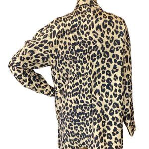 Description: Vintage 100% Silk Leopard Print Button Front Collared Long Sleeve Blouse Top Side Slits.