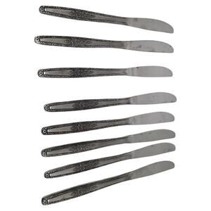 This includes eight dinner forks, eight salad forks, eight tablespoons, eight knives, and 16 teaspoons. In addition, there is a sugar spoon and a butter spreader. Very good condition. Barely Used.