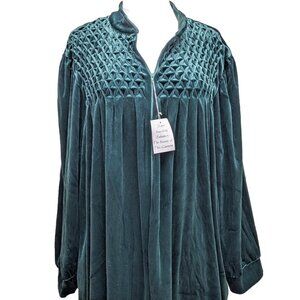 VTG Styled By Saybury Hand-Smocked Velour Half-Zip Housecoat in Forest Green