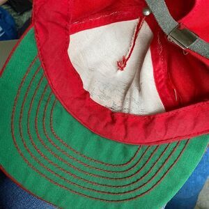 This hat is in excellent vintage condition. It shows no signs of wear, stains, fading, etc. The leather strap is a bit dry but not irreversibly so. There is a bit of corrosion on the metal grommet that holds the tag in. (see photo)