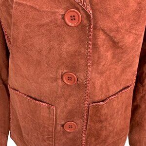 VTG Suede Blazer 6 Hippie Boho Crochet Trim Rust Brown Western Gypsy Festival