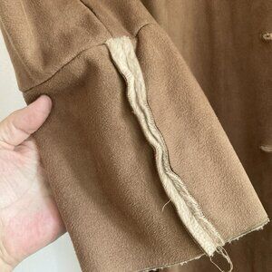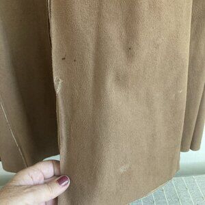 Vintage soft warm brown Suede Leather Coat. Equestrian style for Fall, midi length Long Jacket. Pairs well with Boho hippie, Western, old money, and can be styled for Fall Academia as well