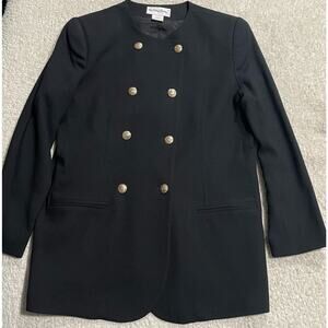 Vintage Suit - double breasted Blazer size 12 petite + pencil skirt size 10 - both 100% Wool. The Very Thing Womens Black - Gold buttons. Both pieces fully lined.